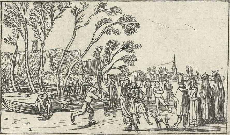 Wir bieten Ihnen eine handgefertigte Reproduktion auf Leinwand des berühmten Kunstwerks 'Skater auf dem Eis auf einem Bauernhof' von Esaias van de Velde, aus dem Reproduktionsmuseum.