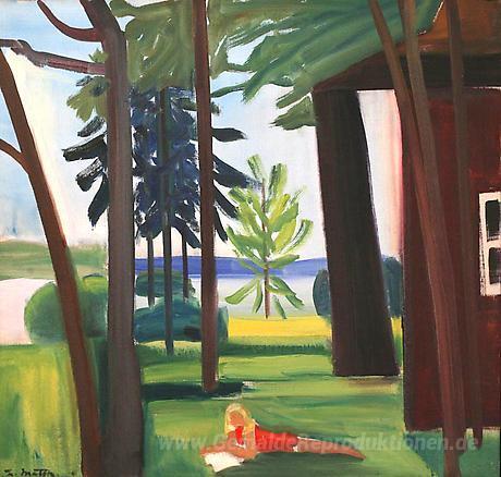 Wir bieten Ihnen eine handgefertigte Reproduktion auf Leinwand des berühmten Kunstwerks 'Skowhegan Landschaft' von Louisa Matthiasdottir, aus dem Reproduktionsmuseum.
