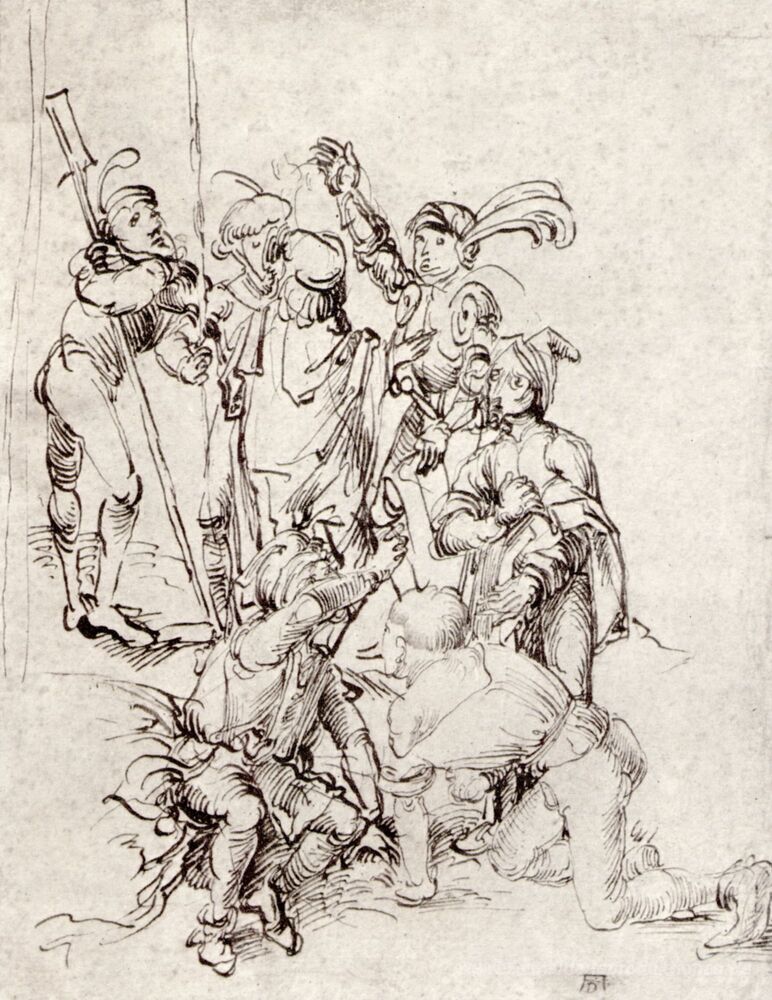 Wir bieten Ihnen eine handgefertigte Reproduktion auf Leinwand des berühmten Kunstwerks 'Soldaten unter dem Kreuz' von Albrecht Durer, aus dem Reproduktionsmuseum.
