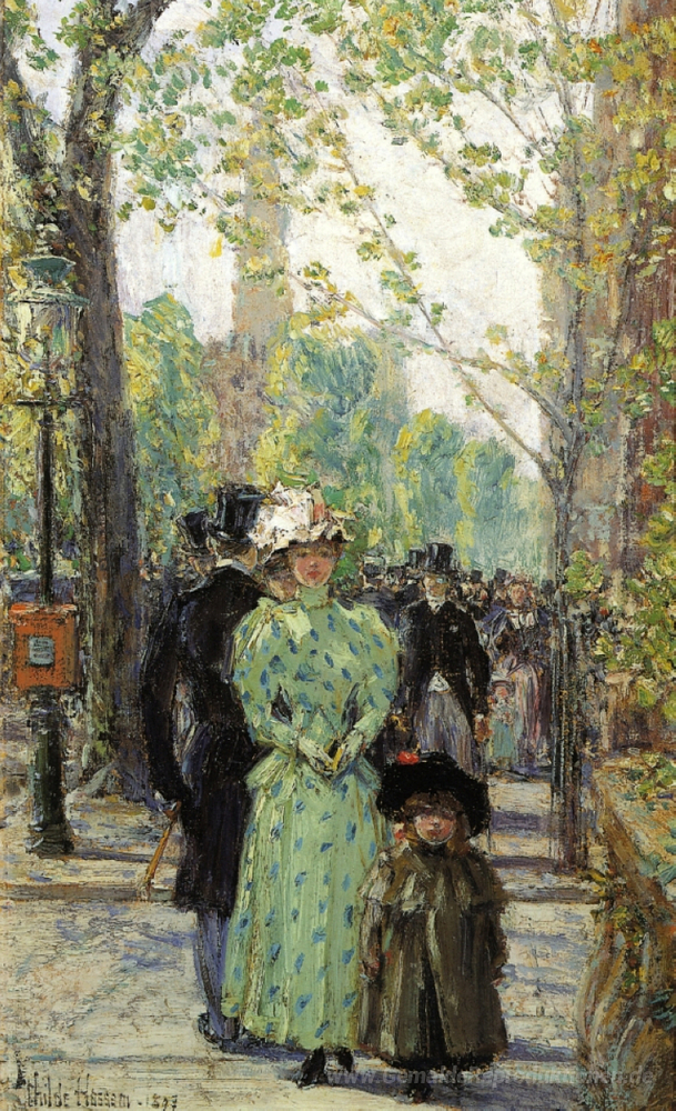 Wir bieten Ihnen eine handgefertigte Reproduktion auf Leinwand des berühmten Kunstwerks 'Sonntag Morgen' von Childe Hassam, aus dem Reproduktionsmuseum.