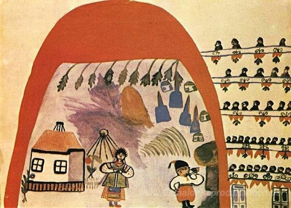 Wir bieten Ihnen eine handgefertigte Reproduktion auf Leinwand des berühmten Kunstwerks 'Spectacle "Kosaken jenseits der Donau"' von Maria Primachenko, aus dem Reproduktionsmuseum.