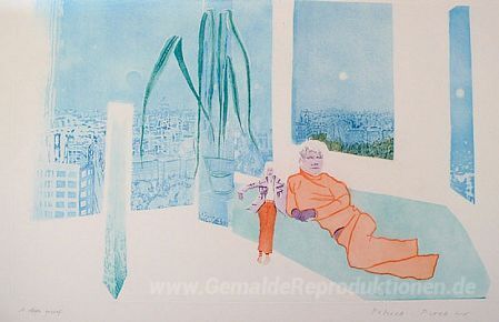Willkommen in der faszinierenden Welt der Ölgemälde, wo jedes Kunstwerk eine einzigartige Geschichte erzählt. Eines dieser Meisterwerke ist Spiegel aus "Einladung zu einer Reise Portfolio von 5 Aqua" von dem renommierten Künstler Patrick Procktor. Procktor, bekannt für seine farbenfrohen und lebendigen Kompositionen, verbindet in seinen Arbeiten abstrakte Elemente mit einer tiefgründigen Symbolik, die den Betrachter zum Nachdenken anregt.