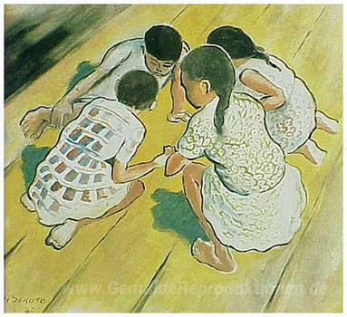 Wir bieten Ihnen eine handgefertigte Reproduktion auf Leinwand des berühmten Kunstwerks 'Spielende Kinder' von Gerard Sekoto, aus dem Reproduktionsmuseum.