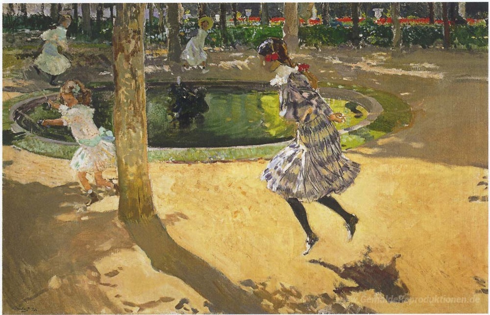 Wir bieten Ihnen eine handgefertigte Reproduktion auf Leinwand des berühmten Kunstwerks 'Springseil bei La Granja' von Joaquín Sorolla, aus dem Reproduktionsmuseum.