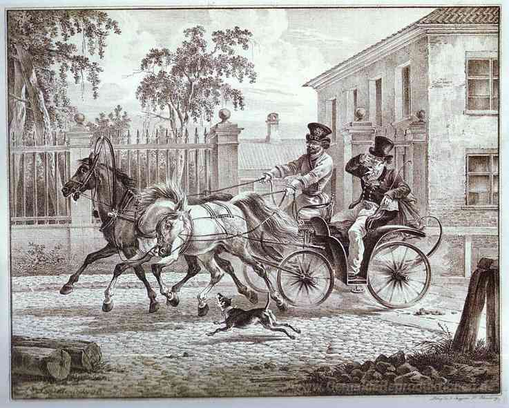 Wir bieten Ihnen eine handgefertigte Reproduktion auf Leinwand des berühmten Kunstwerks 'Stadt Carriage (Droschke)' von Alexander Orlowski, aus dem Reproduktionsmuseum.
