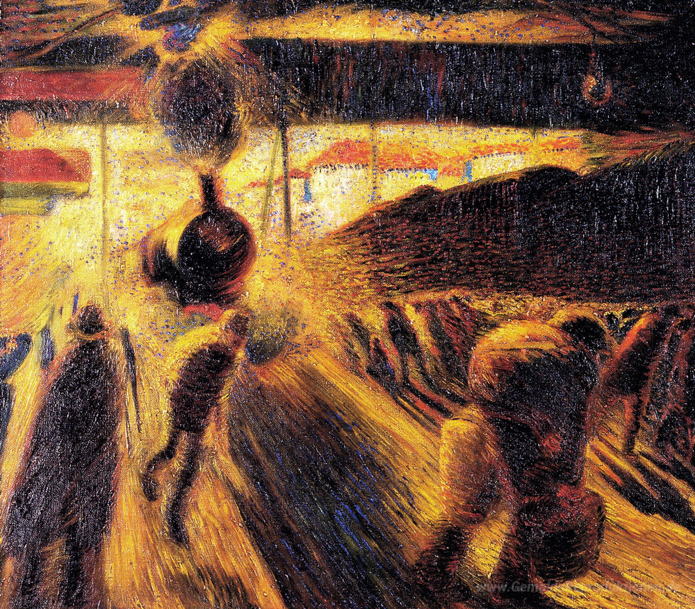 Wir bieten Ihnen eine handgefertigte Reproduktion auf Leinwand des berühmten Kunstwerks 'Stazione a Milano' von Carlo Carra, aus dem Reproduktionsmuseum.