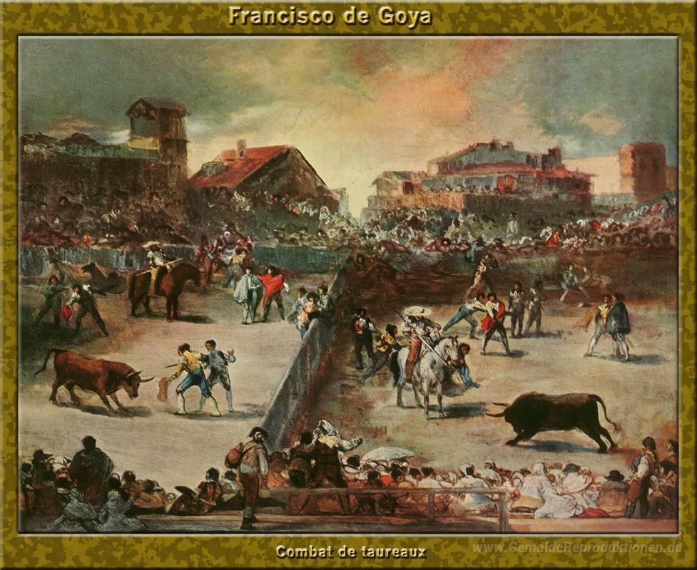 Wir bieten Ihnen eine handgefertigte Reproduktion auf Leinwand des berühmten Kunstwerks 'Stierkampf' von Francisco Goya, aus dem Reproduktionsmuseum.