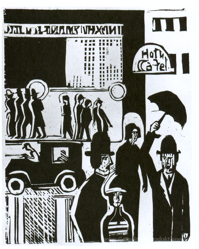 Wir bieten Ihnen eine handgefertigte Reproduktion auf Leinwand des berühmten Kunstwerks 'Straße im Regen' von Ernst Ludwig Kirchner, aus dem Reproduktionsmuseum.