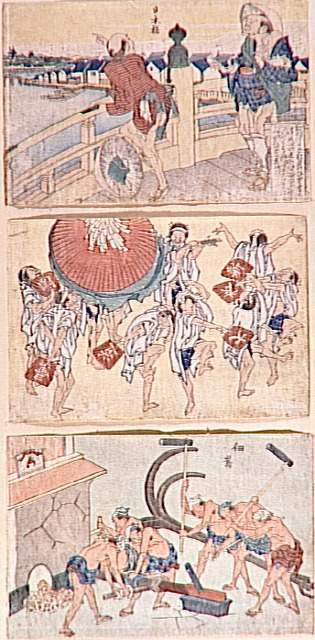 Wir bieten Ihnen eine handgefertigte Reproduktion auf Leinwand des berühmten Kunstwerks 'Straßenszenen neu pubished' von Katsushika Hokusai, aus dem Reproduktionsmuseum.