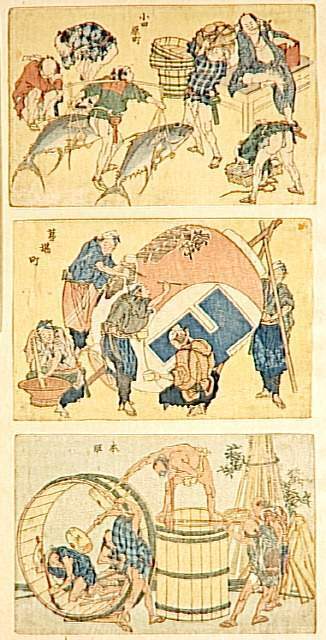 Wir bieten Ihnen eine handgefertigte Reproduktion auf Leinwand des berühmten Kunstwerks 'Straßenszenen neu pubished' von Katsushika Hokusai, aus dem Reproduktionsmuseum.