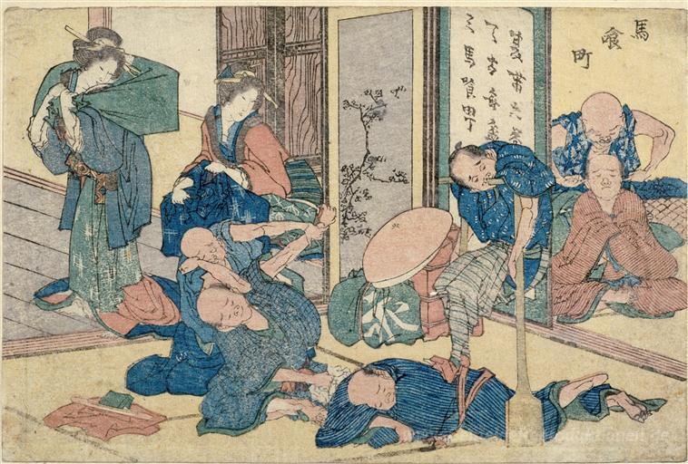 Wir bieten Ihnen eine handgefertigte Reproduktion auf Leinwand des berühmten Kunstwerks 'Straßenszenen neu pubished' von Katsushika Hokusai, aus dem Reproduktionsmuseum.