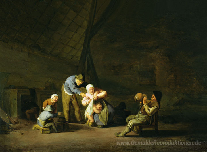 Wir bieten Ihnen eine handgefertigte Reproduktion auf Leinwand des berühmten Kunstwerks 'Streit' von Adriaen van Ostade, aus dem Reproduktionsmuseum.