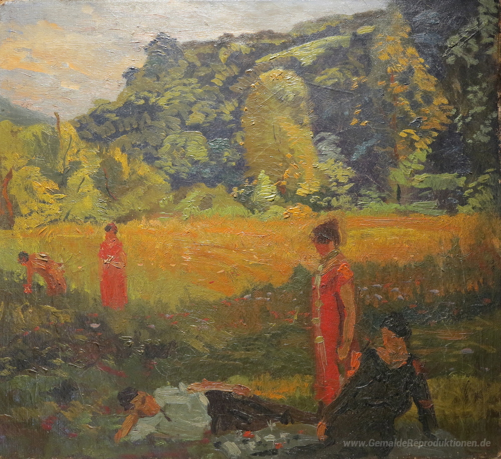 Willkommen in der faszinierenden Welt der Ölgemälde, wo Kunst und Emotion in einem harmonischen Zusammenspiel verschmelzen. Ein herausragendes Beispiel dieser Kunstform ist das Werk Summer Evening, Frankreich, geschaffen vom talentierten Künstler Arthur Beecher Carles. Carles, bekannt für seinen lebendigen Einsatz von Farbe und Licht, entführt den Betrachter mit seinen meisterhaft gearbeiteten Szenen in die ruhige Atmosphäre eines französischen Sommers.
