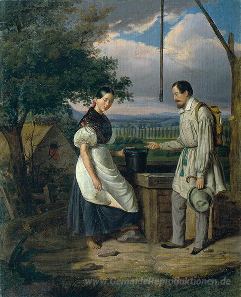 Wir bieten Ihnen eine handgefertigte Reproduktion auf Leinwand des berühmten Kunstwerks 'Szene in einem Brunnen' von Constantin Daniel Rosenthal, aus dem Reproduktionsmuseum.