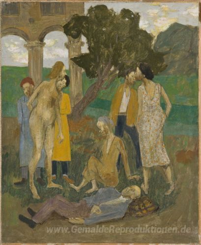Wir bieten Ihnen eine handgefertigte Reproduktion auf Leinwand des berühmten Kunstwerks 'Szene Paysanne' von Grégoire Michonze, aus dem Reproduktionsmuseum.