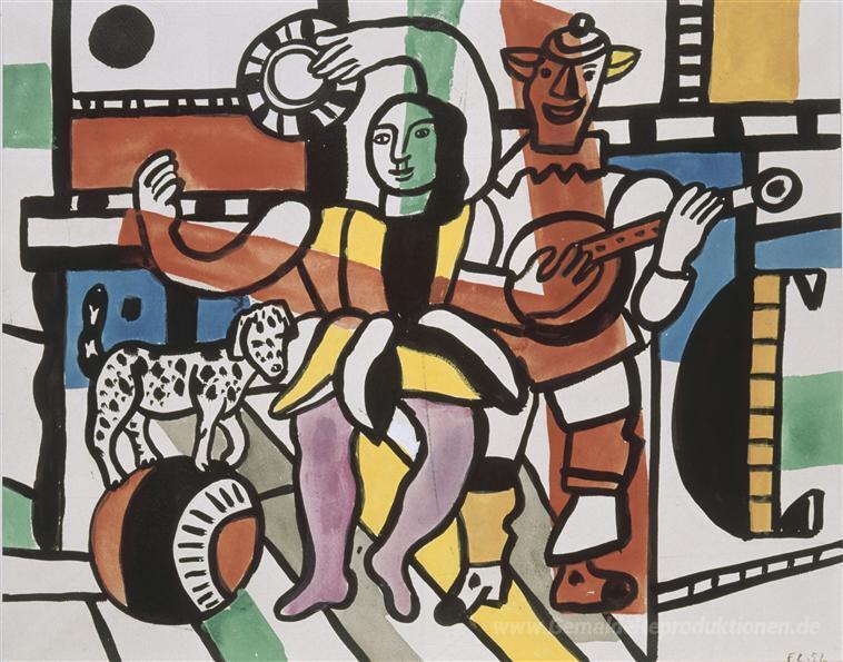 Wir bieten Ihnen eine handgefertigte Reproduktion auf Leinwand des berühmten Kunstwerks 'Tänzer Der Hund (der Hund auf den Ball, Studie für die Grande Pa' von Fernand Leger, aus dem Reproduktionsmuseum.