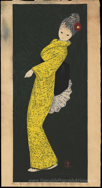 Wir bieten Ihnen eine handgefertigte Reproduktion auf Leinwand des berühmten Kunstwerks 'Tanzen-Zahl (Camellia)' von Kaoru Kawano, aus dem Reproduktionsmuseum.