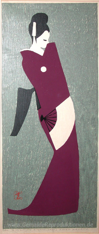Wir bieten Ihnen eine handgefertigte Reproduktion auf Leinwand des berühmten Kunstwerks 'Tanzen-Zahl (Taki)' von Kaoru Kawano, aus dem Reproduktionsmuseum.