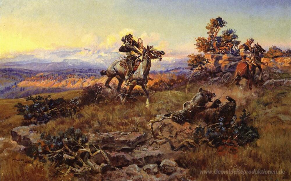 Ölgemälde sind eine der elegantesten Ausdrucksformen der bildenden Kunst, die durch ihre Tiefe und Farbenvielfalt stets berührt und inspiriert. Eines der bemerkenswertesten Werke ist The Stranglers von Charles M. Russell, einem der einflussreichsten amerikanischen Künstler des späten 19. und frühen 20. Jahrhunderts. Russell, bekannt für seine fesselnden Darstellungen des Wilden Westens, vereint in seinen Gemälden technisches Können mit einem beeindruckenden Gespür für die Seele der Natur und des Lebens.