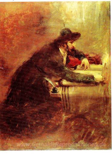 Wir bieten Ihnen eine handgefertigte Reproduktion auf Leinwand des berühmten Kunstwerks 'Toraschreiber' von Maurycy Gottlieb, aus dem Reproduktionsmuseum.
