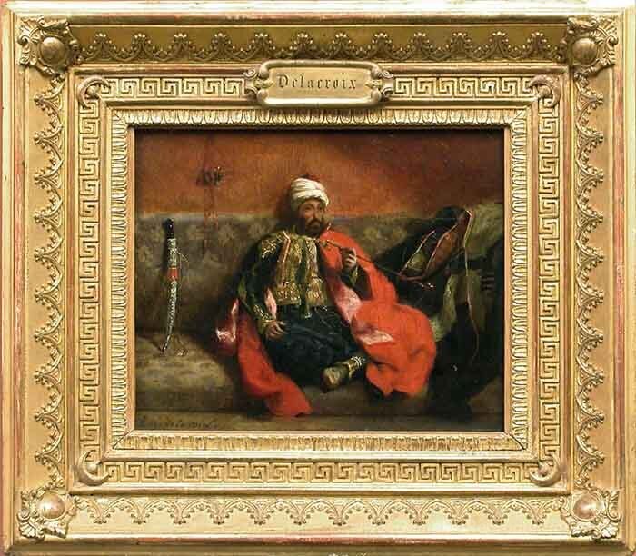 Wir bieten Ihnen eine handgefertigte Reproduktion auf Leinwand des berühmten Kunstwerks 'Turk Rauchen Sitzen auf einer Couch' von Eugene Delacroix, aus dem Reproduktionsmuseum.
