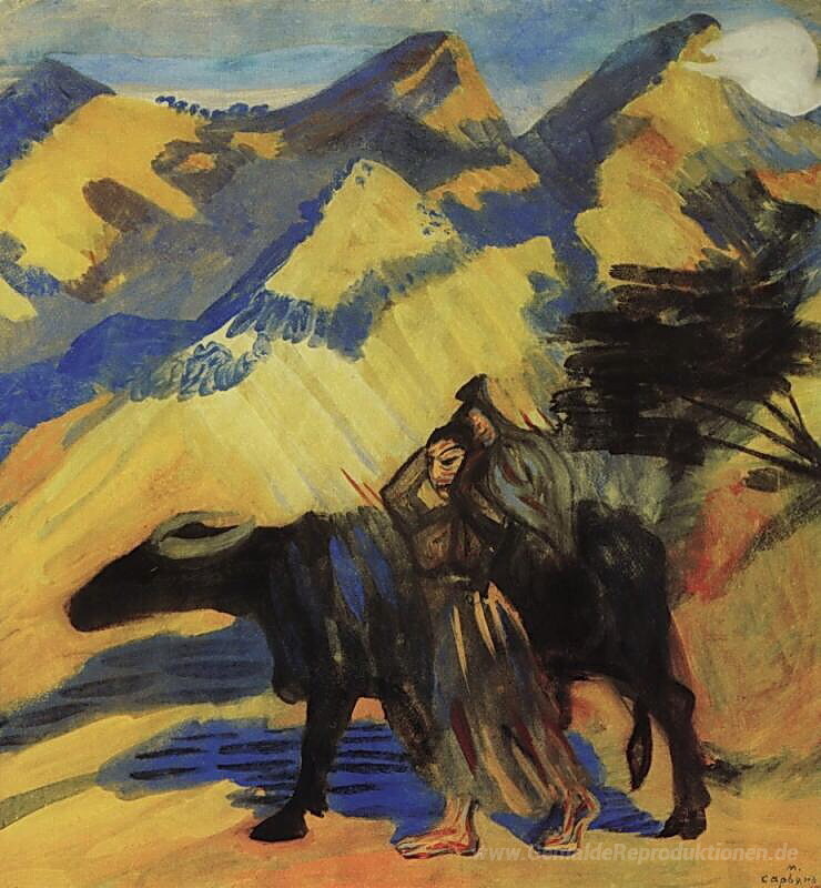 Wir bieten Ihnen eine handgefertigte Reproduktion auf Leinwand des berühmten Kunstwerks 'Um die Feder' von Martiros Saryan, aus dem Reproduktionsmuseum.