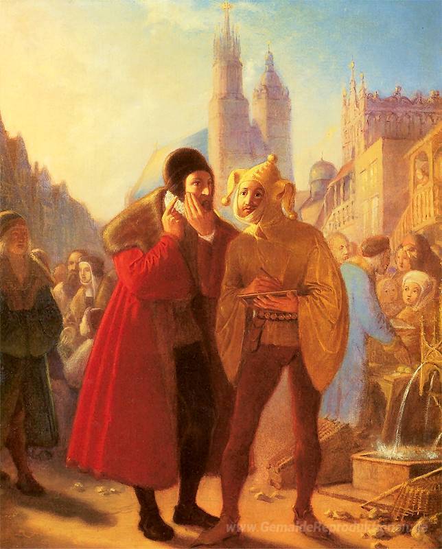 Wir bieten Ihnen eine handgefertigte Reproduktion auf Leinwand des berühmten Kunstwerks 'Um Stanczyk' von Jan Matejko, aus dem Reproduktionsmuseum.
