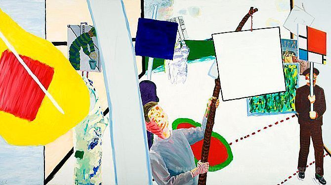 Wir bieten Ihnen eine handgefertigte Reproduktion auf Leinwand des berühmten Kunstwerks 'Unbekannter Titel' von Roger Raveel, aus dem Reproduktionsmuseum.
