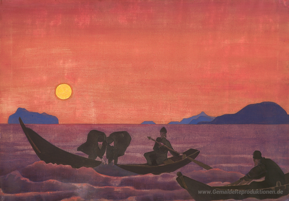 Wir bieten Ihnen eine handgefertigte Reproduktion auf Leinwand des berühmten Kunstwerks 'Und wir Fischfang fortzusetzen' von Nicholas Roerich, aus dem Reproduktionsmuseum.