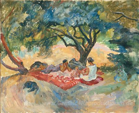 Wir bieten Ihnen eine handgefertigte Reproduktion auf Leinwand des berühmten Kunstwerks 'Unter dem Baum' von Pyotr Konchalovsky, aus dem Reproduktionsmuseum.