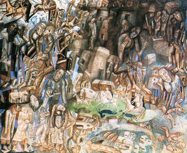 Wir bieten Ihnen eine handgefertigte Reproduktion auf Leinwand des berühmten Kunstwerks 'Untitled (Die Reiter)' von Pavel Filonov, aus dem Reproduktionsmuseum.