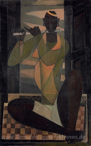 Wir bieten Ihnen eine handgefertigte Reproduktion auf Leinwand des berühmten Kunstwerks 'Untitled (Joueur de Flute)' von Paritosh Sen, aus dem Reproduktionsmuseum.