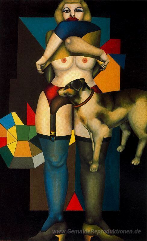 Wir bieten Ihnen eine handgefertigte Reproduktion auf Leinwand des berühmten Kunstwerks 'Untitled No. 1' von Richard Lindner, aus dem Reproduktionsmuseum.