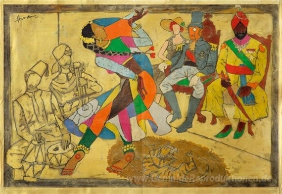 Wir bieten Ihnen eine handgefertigte Reproduktion auf Leinwand des berühmten Kunstwerks 'Untitled (Raj-Serie)' von M.F. Husain, aus dem Reproduktionsmuseum.