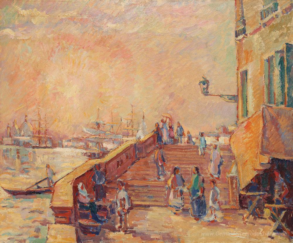 Wir bieten Ihnen eine handgefertigte Reproduktion auf Leinwand des berühmten Kunstwerks 'Venice Cliff von San Marco Piazza gesehen' von Nicolae Darascu, aus dem Reproduktionsmuseum.