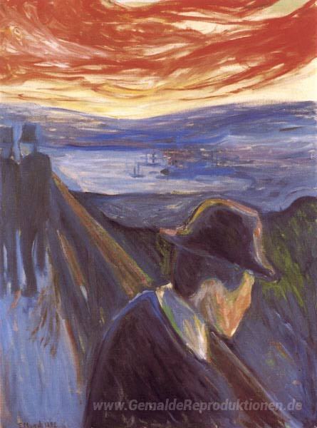Wir bieten Ihnen eine handgefertigte Reproduktion auf Leinwand des berühmten Kunstwerks 'Verzweiflung' von Edvard Munch, aus dem Reproduktionsmuseum.