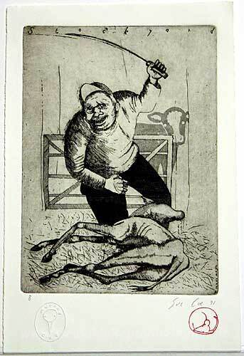 Wir bieten Ihnen eine handgefertigte Reproduktion auf Leinwand des berühmten Kunstwerks 'Viehhof' von Sue Coe, aus dem Reproduktionsmuseum.