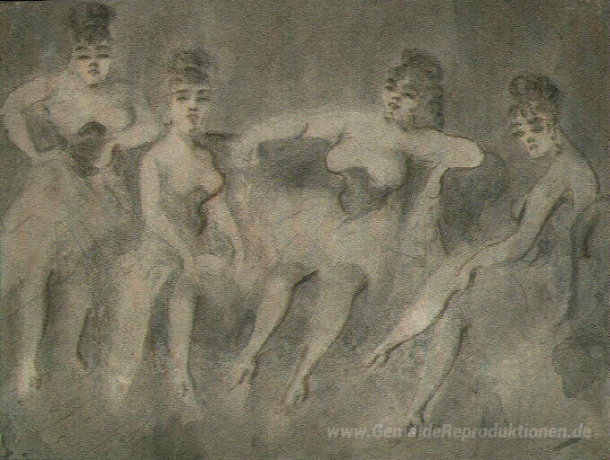 Wir bieten Ihnen eine handgefertigte Reproduktion auf Leinwand des berühmten Kunstwerks 'Vier Frauen auf einem Sofa' von Constantin Guys, aus dem Reproduktionsmuseum.