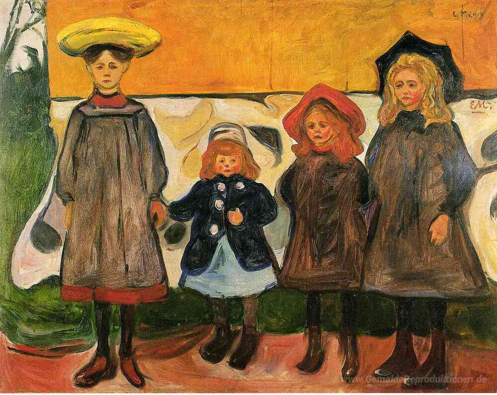 Wir bieten Ihnen eine handgefertigte Reproduktion auf Leinwand des berühmten Kunstwerks 'Vier Mädchen im Arsgardstrand' von Edvard Munch, aus dem Reproduktionsmuseum.