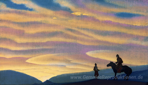 Wir bieten Ihnen eine handgefertigte Reproduktion auf Leinwand des berühmten Kunstwerks 'Voice of Mongolia' von Nicholas Roerich, aus dem Reproduktionsmuseum.