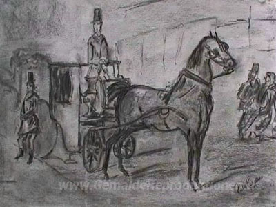 Wir bieten Ihnen eine handgefertigte Reproduktion auf Leinwand des berühmten Kunstwerks 'Voiture' von Constantin Guys, aus dem Reproduktionsmuseum.