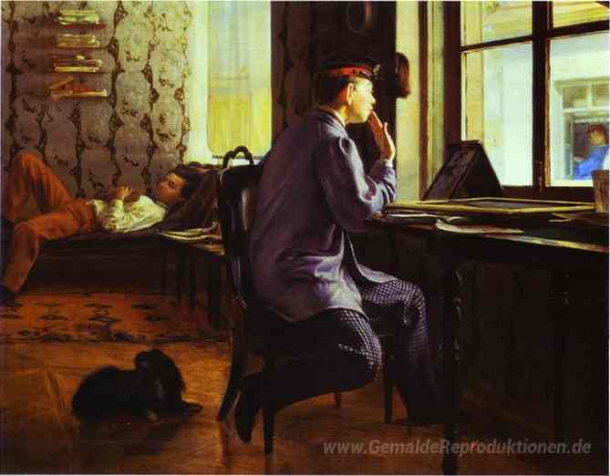 Willkommen in unserer exquisiten Sammlung von Ölgemälden, die nicht nur als dekorative Elemente fungieren, sondern auch tiefere emotionale Resonanzen schaffen. Eines dieser bemerkenswerten Werke ist Vorbereitung auf die Prüfung, geschaffen von dem Meister des Realismus, Ilya Repin. Dieser Künstler, bekannt für seine Fähigkeit, menschliche Emotionen in ihren authentischsten Formen einzufangen, verwendet eine lebendige Farbpalette und feine Pinselstriche, um den Betrachter in das innere Gefühlsleben seiner Figuren zu ziehen.