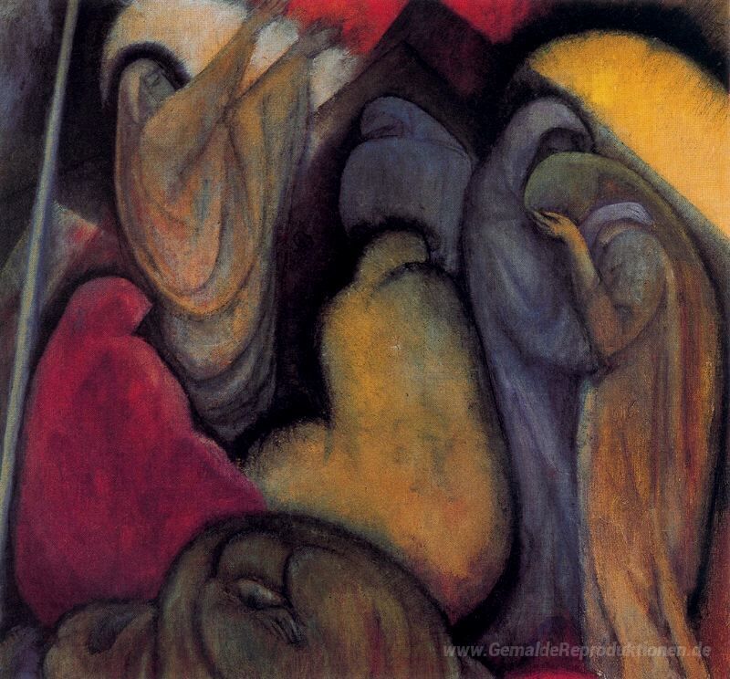 Wir bieten Ihnen eine handgefertigte Reproduktion auf Leinwand des berühmten Kunstwerks 'Wehklage' von Albert Bloch, aus dem Reproduktionsmuseum.