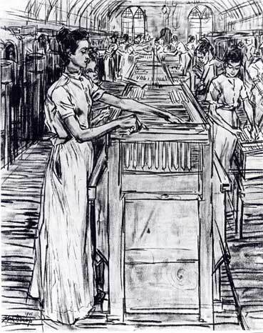 Wir bieten Ihnen eine handgefertigte Reproduktion auf Leinwand des berühmten Kunstwerks 'Weiblichen Beschäftigten in der Kerzenfabrik in Gouda' von Jan Toorop, aus dem Reproduktionsmuseum.