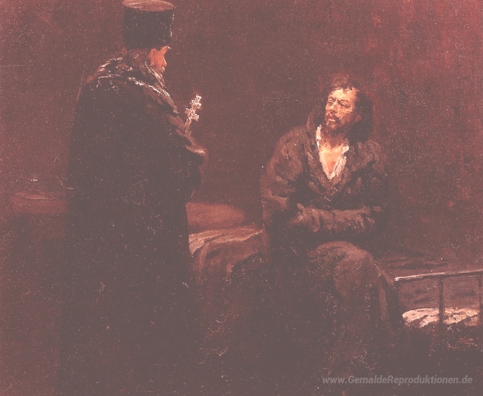 Wir bieten Ihnen eine handgefertigte Reproduktion auf Leinwand des berühmten Kunstwerks 'Weigerung der Beichte' von Ilya Repin, aus dem Reproduktionsmuseum.