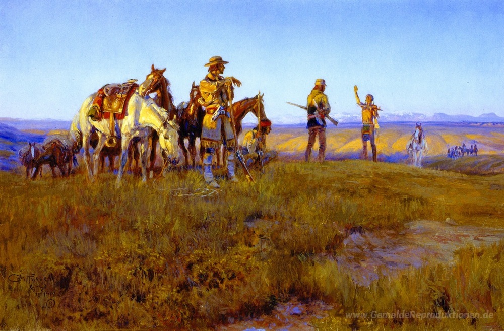Willkommen in der faszinierenden Welt der Ölgemälde, wo Kunst und Emotionen in vollendeter Harmonie verschmelzen. Entdecken Sie das Meisterwerk Wilden Mannes Truce von Charles M. Russell, einem der bekanntesten amerikanischen Künstler des späten 19. und frühen 20. Jahrhunderts. Russell, bekannt für seine authentischen Darstellungen des amerikanischen Westens, fängt in seinen Werken die zeitlose Schönheit und Dramatik der Natur sowie das Leben der Ureinwohner ein.