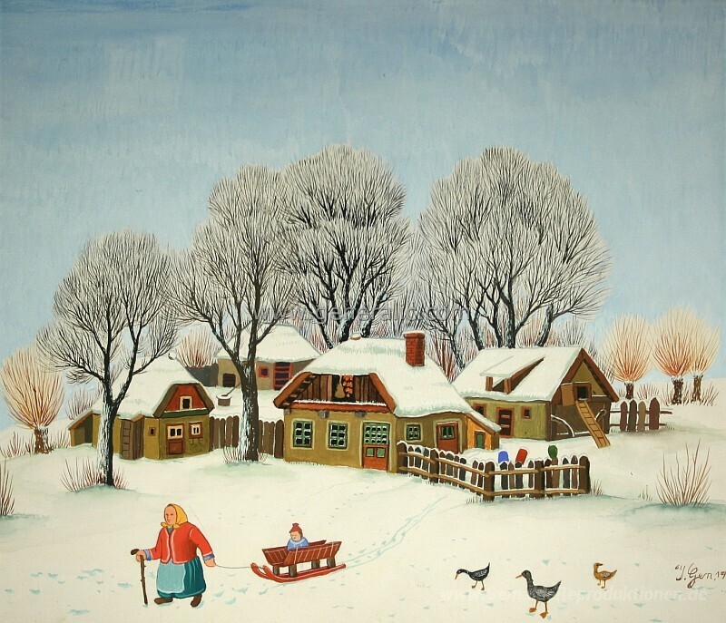 Wir bieten Ihnen eine handgefertigte Reproduktion auf Leinwand des berühmten Kunstwerks 'Winter' von Ivan Generalic, aus dem Reproduktionsmuseum.