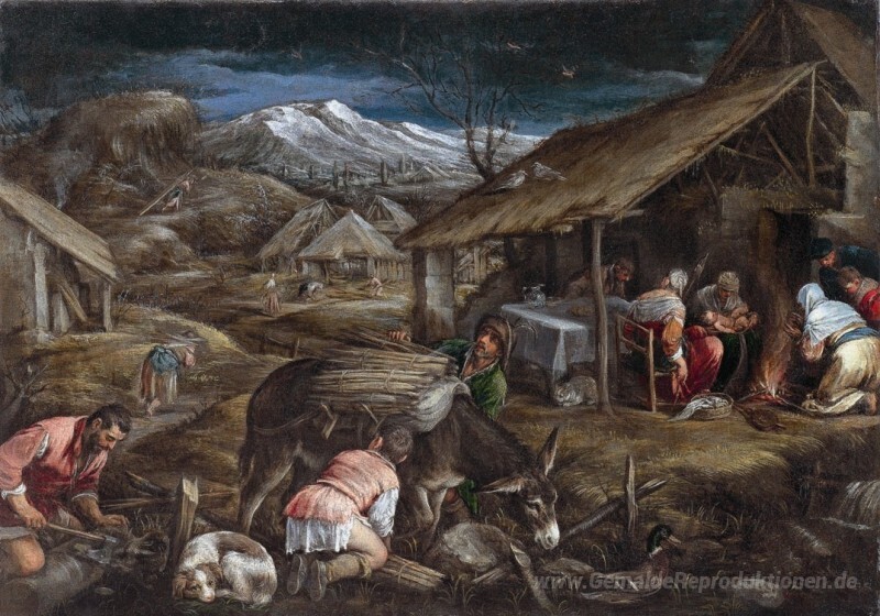 Wir bieten Ihnen eine handgefertigte Reproduktion auf Leinwand des berühmten Kunstwerks 'Winter' von Jacopo Bassano, aus dem Reproduktionsmuseum.