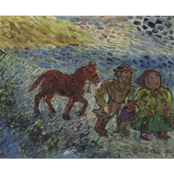 Wir bieten Ihnen eine handgefertigte Reproduktion auf Leinwand des berühmten Kunstwerks 'Winterwanderung' von David Burliuk, aus dem Reproduktionsmuseum.