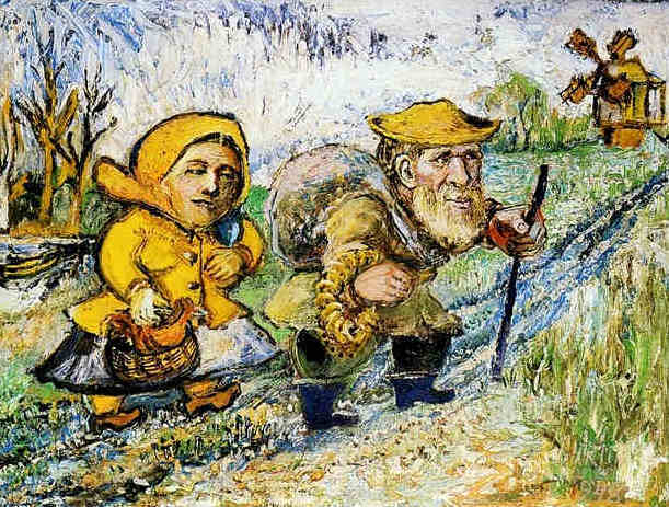 Wir bieten Ihnen eine handgefertigte Reproduktion auf Leinwand des berühmten Kunstwerks 'Zu der Mühle gebunden' von David Burliuk, aus dem Reproduktionsmuseum.